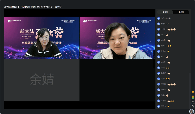 為提升員工需求分析能力,以便更加精準(zhǔn)把握市場與客戶需求并快速響應(yīng)變化,近日,新大陸大學(xué)堂攜手軟件大講堂聯(lián)合打造的精品分享課程《從概念到實(shí)現(xiàn):需求分析六步法》順利舉行,本期大講堂邀請了新大陸大學(xué)堂認(rèn)證講師夏琴芳、陳立擔(dān)任主講嘉賓,面向全體新大陸員工同步直播,吸引了來自全國各區(qū)域近300名員工線上參與,共同探索實(shí)現(xiàn)精準(zhǔn)需求分析的奧秘。