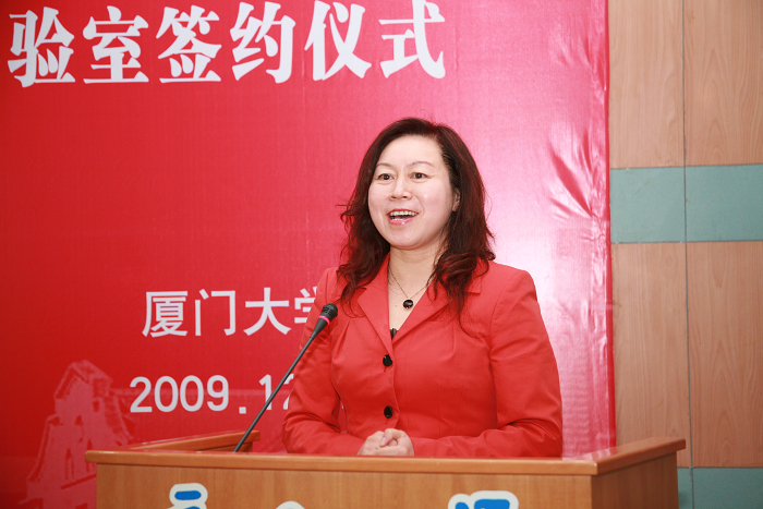 儀式上,新大陸科技集團王晶總裁發表了熱情洋溢的演說,她首先對廈大聘請虞華年、