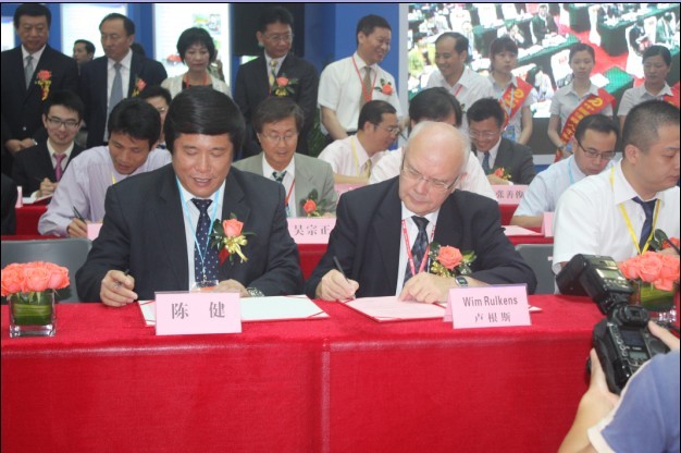 本屆6.18還舉行了眾多項目對接簽約儀式。其中新大陸軟件公司梁鍵總經理與中移動福建公司張莉副總簽署加強合作的項目對接備忘錄。新大陸軟件將與中移動福建公司在良好合作基礎上,進一步深化合作內容﹑擴大合作范圍,結成戰略合作伙伴關系。新大陸環保公司陳健總經理與荷蘭瓦赫寧根大學教授 Wim.H.Rulkens 進行境外專家項目合作簽約儀式。雙方將就“水體污染控制技術”項目展開合作;此外,福州市人民政府授予新大陸環保公司“院士工作站”牌匾,由福州市委書記袁榮祥親自授牌,環保公司常務副總吳子昊接牌。