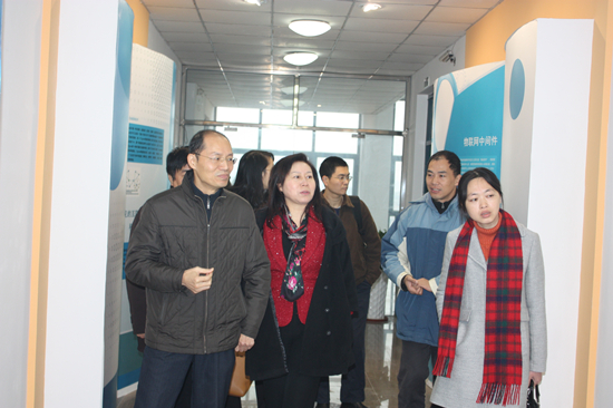 在物聯(lián)網(wǎng)學(xué)院院長蘇凱雄等院領(lǐng)導(dǎo)的陪同下, 王晶總裁參觀了物聯(lián)網(wǎng)工程實驗室