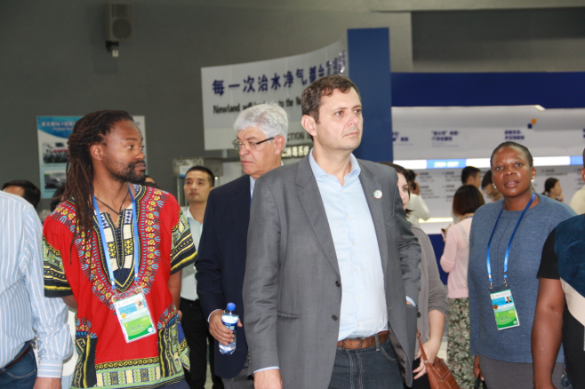 王晶總裁、張俊一、陳嵐全程用英文向外國政要學者們介紹新大陸的發展歷程以及產業概況。貴賓們對新大陸IT、物聯網支付平臺建設、大數據和環?萍嫉膭撔鲁晒籍a生了濃厚的興趣,他們或是詢問技術參數,或是了解產品的市場地位、發展前景等。王晶總裁說,新大陸從IT和環保,到物聯網和大數據的發展,經歷五次變革和“公司上市”、“經歷金融危機”和“習總書記視察”三個重要里程碑,使得新大陸的發展走上了一個又一個新臺階。如今公司已經成為亞太第一、全球第三的POS設備提供商,也是國內條碼識別領域的佼佼者。新大陸在不斷拓展國內市場的同時,積極響應國家的“一帶一路”發展戰略,推動中國制造“走出去”。新大陸在北美、歐洲、臺灣設有分公司,產品已遠銷全球超過100個國家。