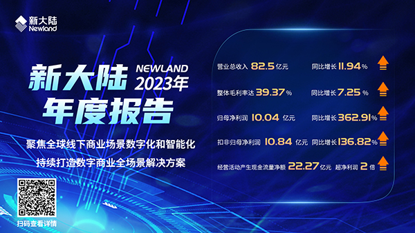 新大陸(000997)4月22日晚發布2023年年度報告。報告期內,公司營業總收入和凈利潤均創歷史新高,數字化轉型發展持續深入,效果顯著。2023年公司實現營業總收入82.50億元,較上年同期增長11.94%,歸屬于上市公司股東的凈利潤10.04 億元,剔除公司持有的股權資產價格變動等非經營性擾動,公司扣非歸母凈利潤10.84 億元,較上年同期增長136.82%,公司經營活動產生的現金流量凈額達到22.27億元,超過歸母凈利潤的2倍。與此同時,公司持續提高投資者回報水平,2023年全年現金分紅合計達每10股5.00元(含稅)。