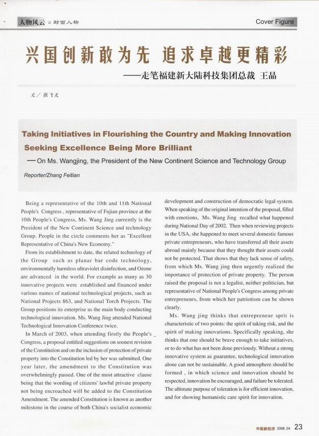 【中國新經(jīng)濟】興國創(chuàng)新敢為先 追求卓越更精彩——走筆福建新大陸科技集團總裁 王晶