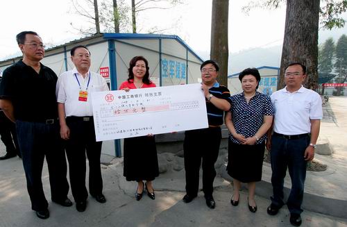 王晶、于洪代表分別向兩所災區學校各捐10元(10萬元)現金,資助學校災后重建。