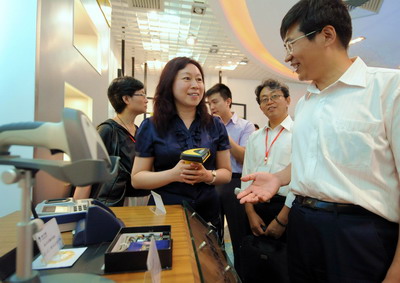 介紹“二維碼”電子產品。 新華社記者 張國俊 攝