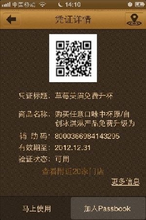 據(jù)千龍網(wǎng)消息,2012年10 月17日,當許多手機用戶一如既往地打開“街奴優(yōu)惠”手機app使用優(yōu)惠券的時候,卻發(fā)現(xiàn)街奴優(yōu)惠的界面發(fā)生了改變,這次在界面下方有了清晰的加入Passbook的提示。